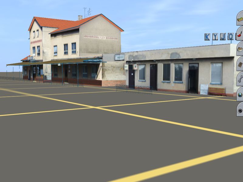 Fotorealistický model nádraží Kyjov (na trati 340). Model obsahuje night-mode a z komínu se kouří.