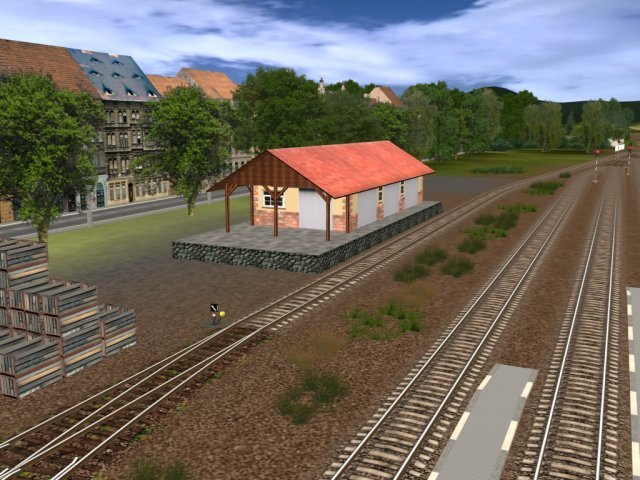 Nákladní skladiště se zvýšeným peronem pro překlad zboží.